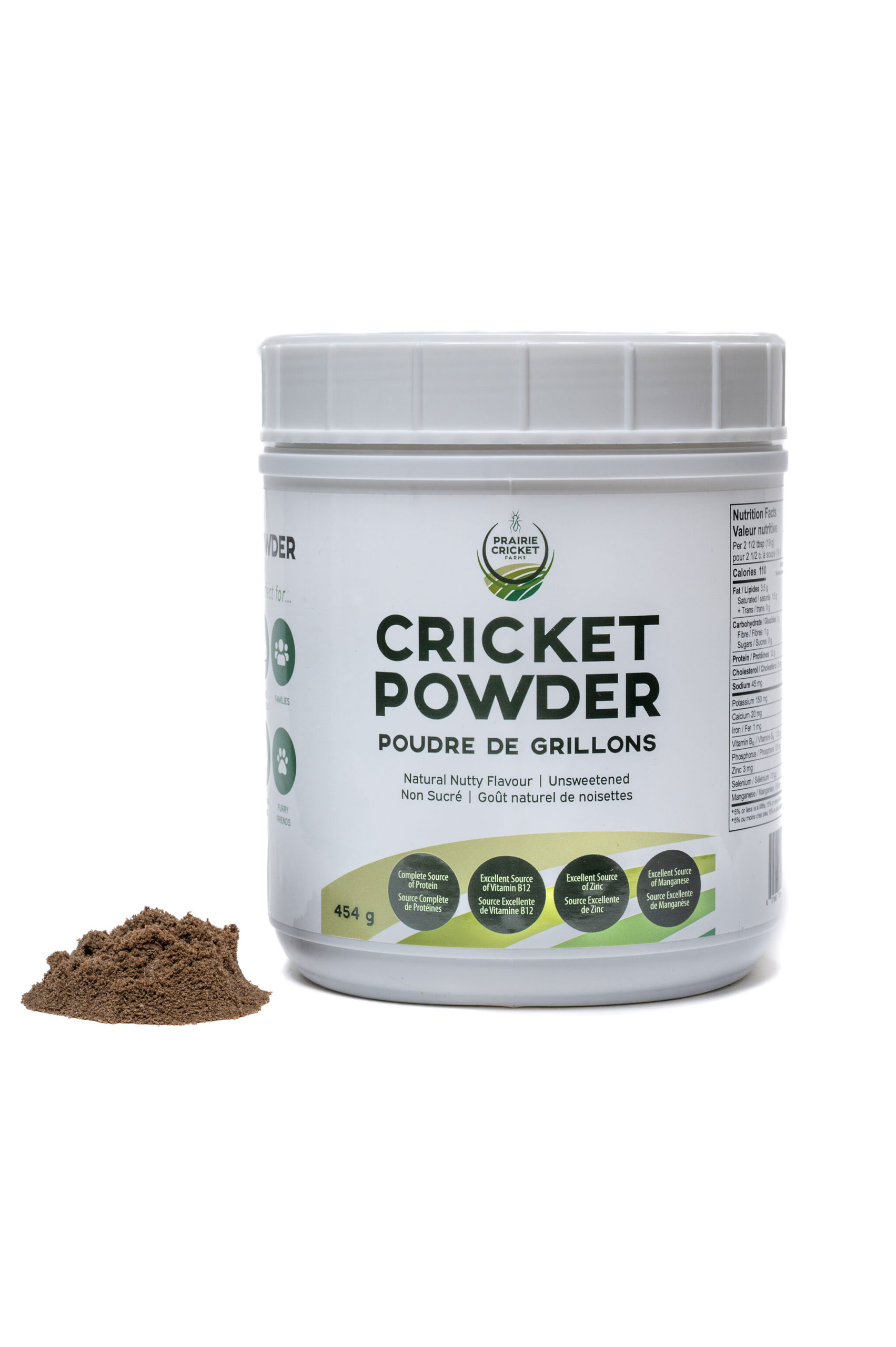 The Prairie Cricket Farms pure cricket powder is made from 100% finely milled roasted crickets. Our powder contains very similar protein content to that of whey (12 grams of protein in only 2.5 tbsps) with the added benefit of being a better option for your gut as it naturally contains prebiotic fibre and is free of dairy. Another amazing benefit of cricket powder is that from start to finish, its production has far less impact on the environment than more traditional protein sources.